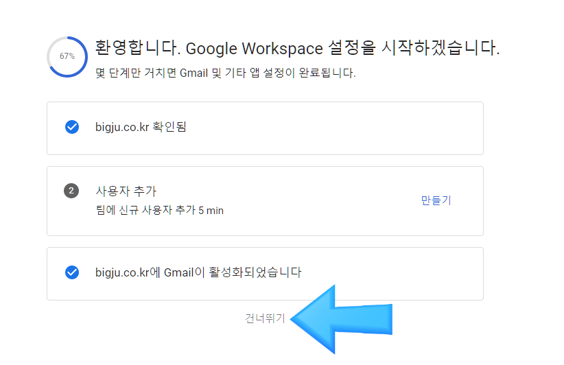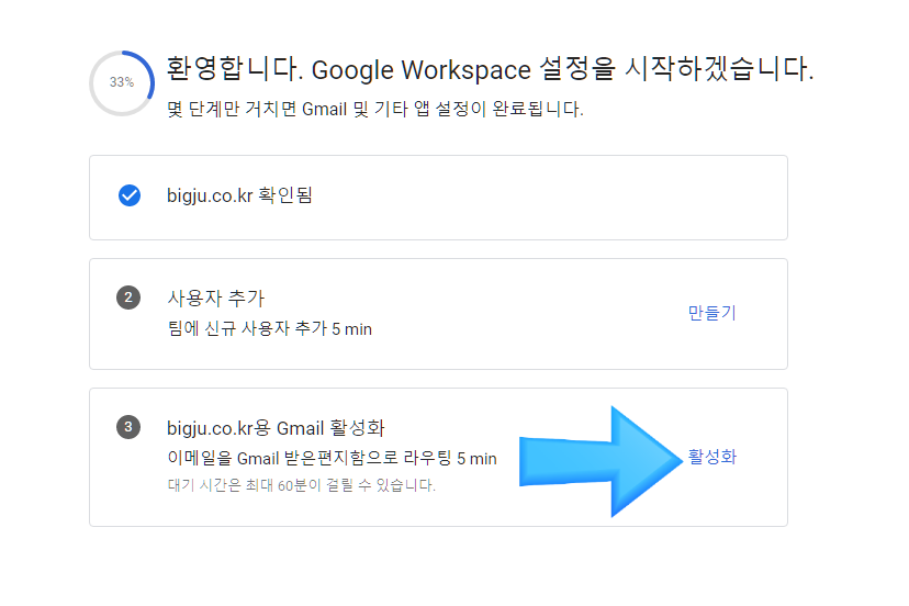 * 구글에서 만든 google@bigju.co.kr 메일로 들어온다 ( 개인이 만든 도메인 이메일 주소 )