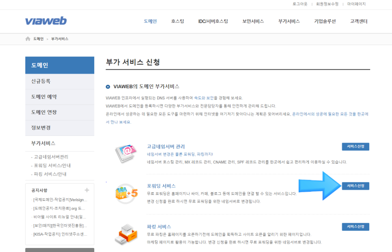 도메인 대행업체 : 비아웹 https://www.viaweb.co.kr/