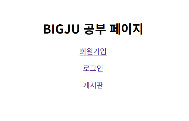 ├── index.php (메인 화면: BIGJU 공부 페이지 + 회원가입/로그인/게시판 버튼)