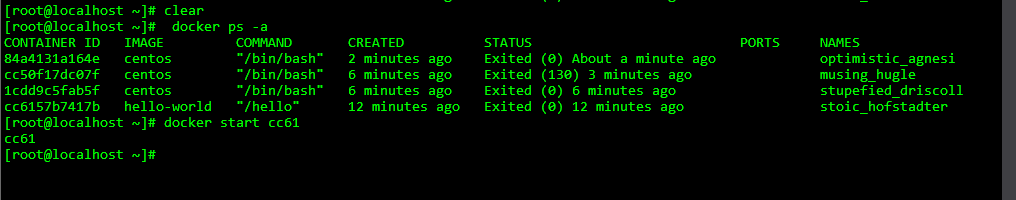 sudo docker start cc61