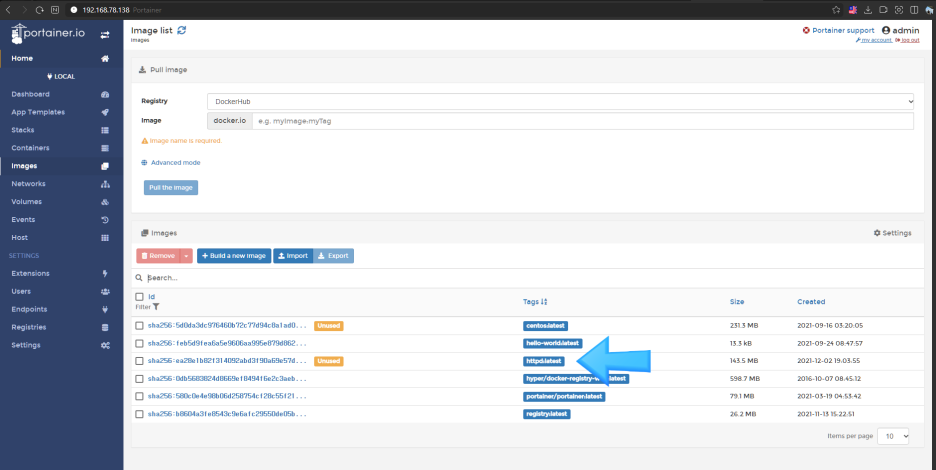 Portainer 는 컨테이너 형태로 제공 되며, 컨테이너 생성 전에 이미지를 다운로드 받아야 합니다.