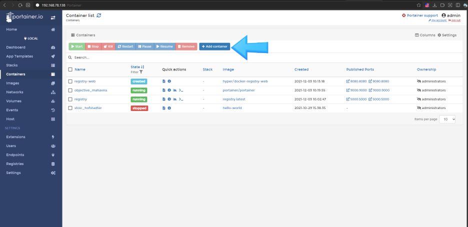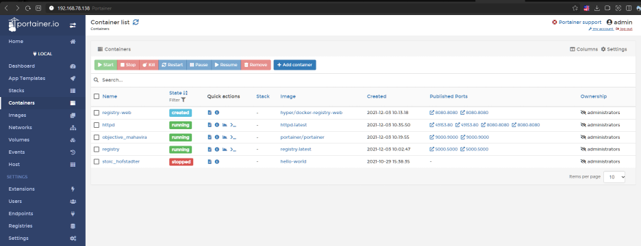 그래서 Portainer를 설치 하면 편하게 이용이 가능하게 됩니다.