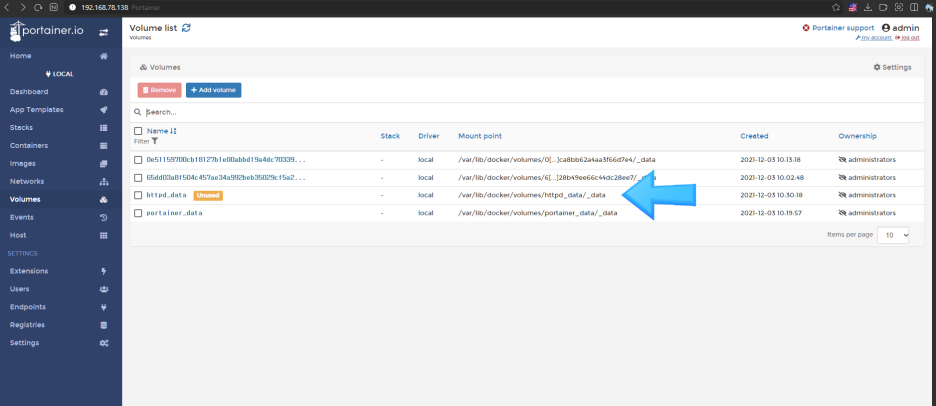 httpd_data 에 대한 볼륨이 생성이 완료 된게 보여지고 있습니다.