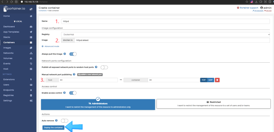 docker run -d -p 9000:9000 -v /var/run/docker.sock:/var/run/docker.sock -v portainer_data:/data --restart=always portainer/portainer