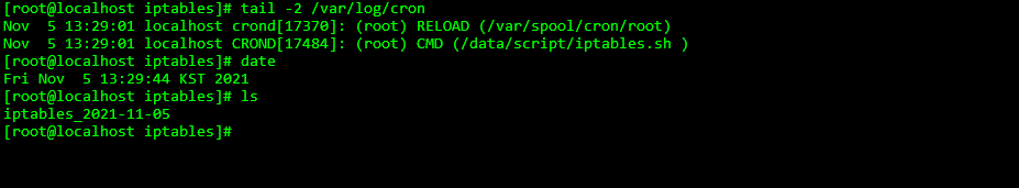 cp /etc/sysconfig/iptables /data/backup/iptables/iptables_$DATE : 해당경로에 해당 날짜로 저장
