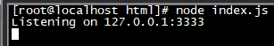 console.log ('Listening on 127.0.0.1:3333');