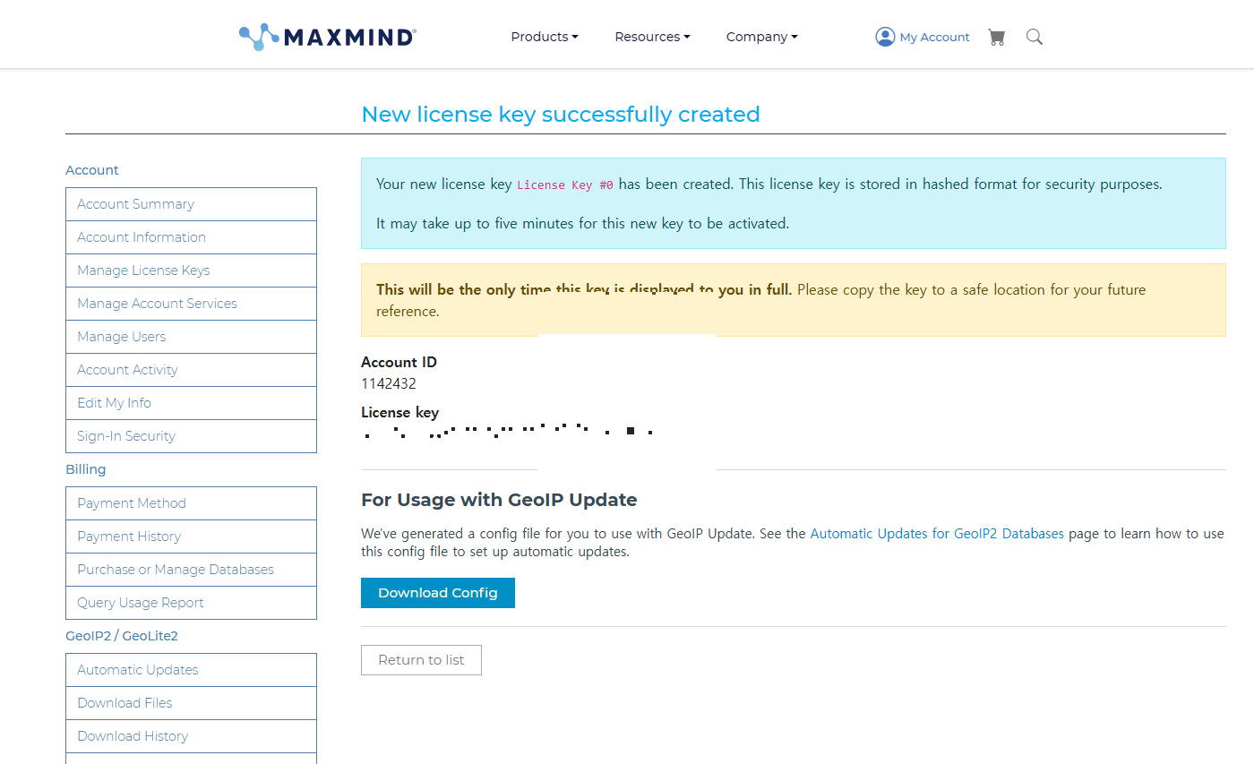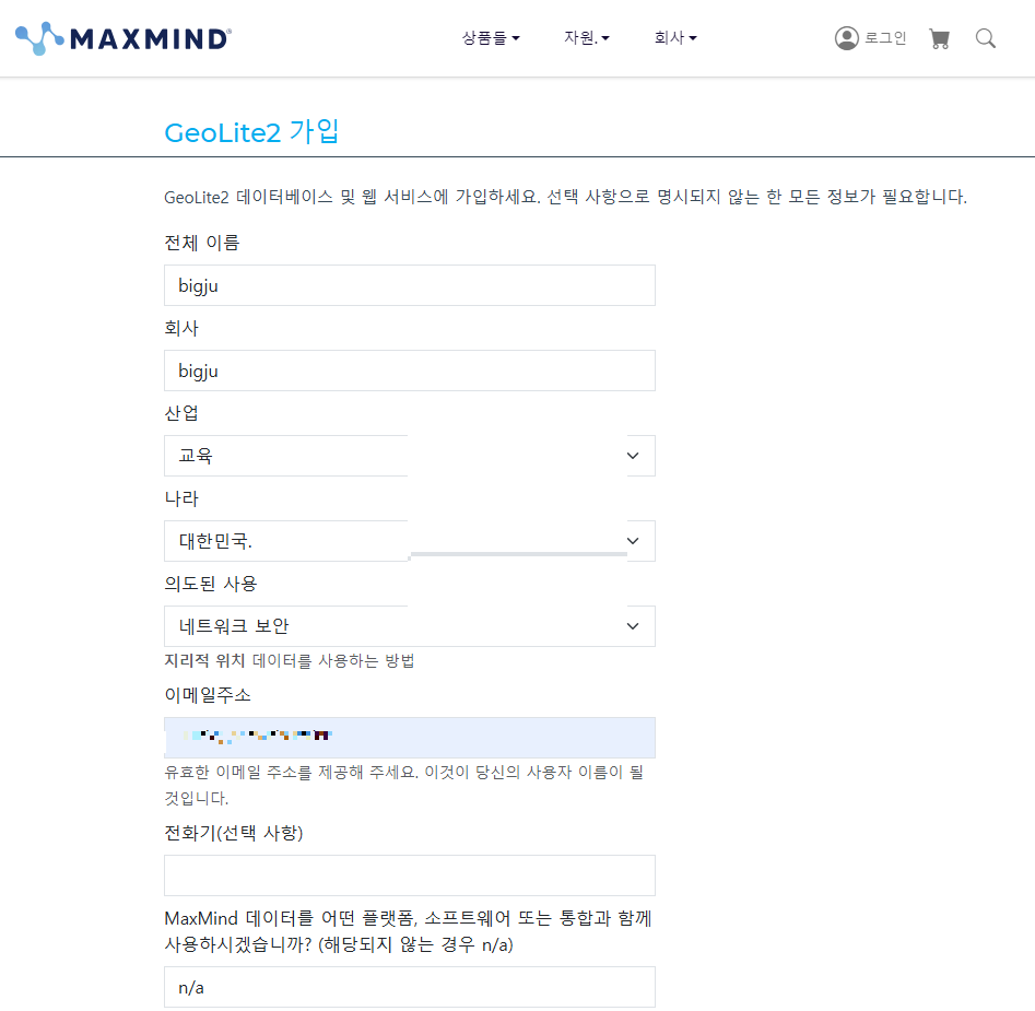 3. maxmind 회원 가입 및 라이센스 키 발급