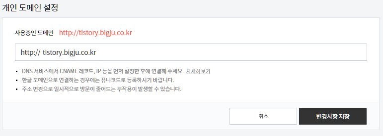 1-2 Tistory < -> 개인 도메인 연결 설정