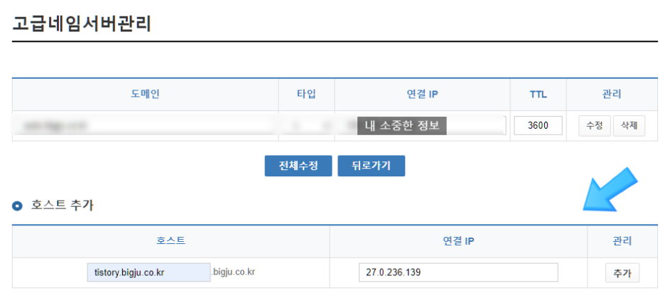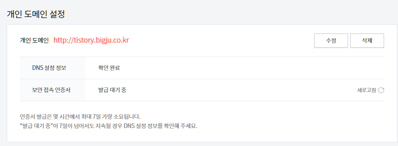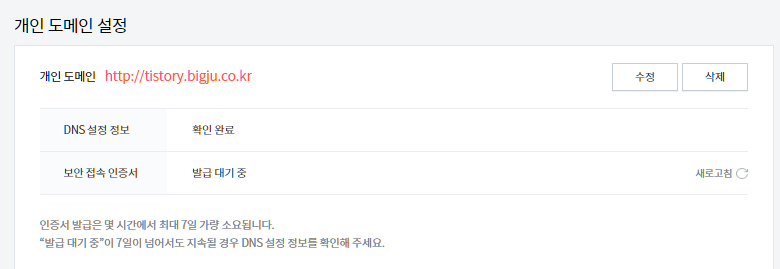 1-2 Tistory < -> 개인 도메인 연결 설정
