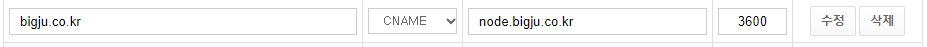 bigju.co.kr를 웹에서 출력할 때 node.bigju.co.kr을 가져오라는 설정이다.