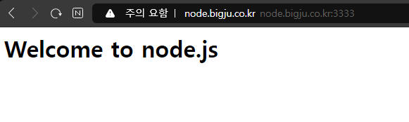 기본 설정은 http://node.bigju.co.kr:3333/ 포트까지 적어줘야 node.js 출력이 가능했지만