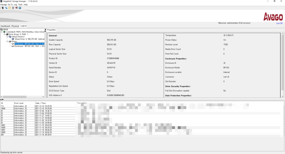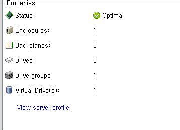 RAID 1 설정을 확인이 가능하며 해당 하드에 대한 정보를 확인이 가능합니다.
