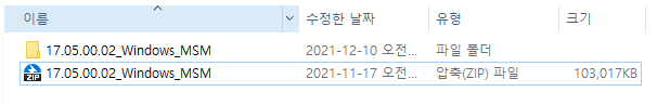 2. 17.05.00.02_Windows_MSM 압축 풀기 -> MSM17050002 압축 풀기