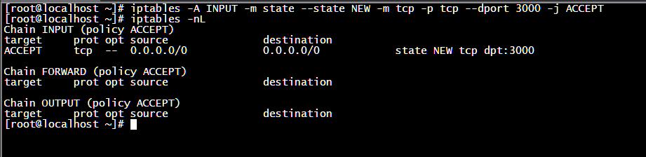 iptables -A INPUT -m state --state NEW -m tcp -p tcp --dport 3000 -j ACCEPT