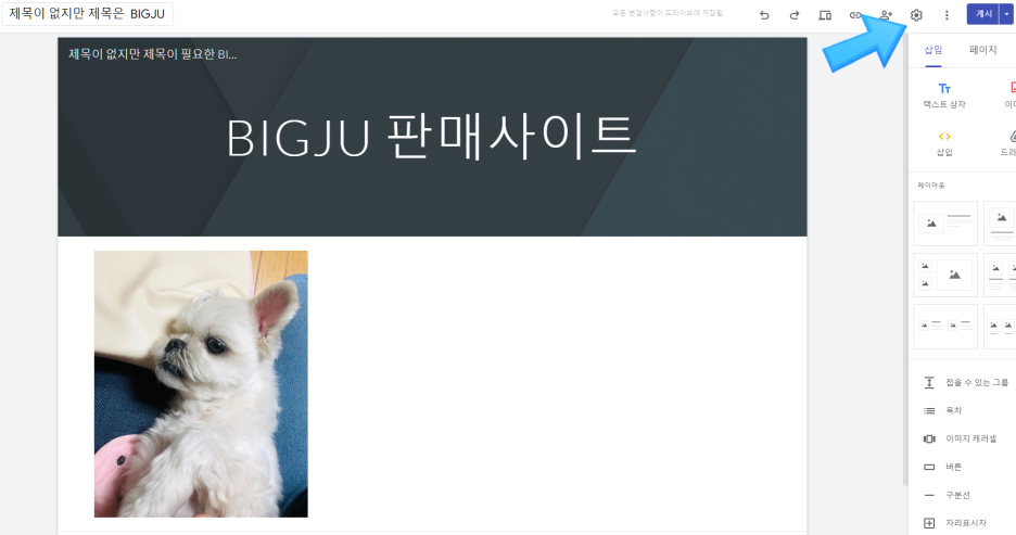 사이트를 제작 후 화살표 방향 게시를 눌러줍니다.