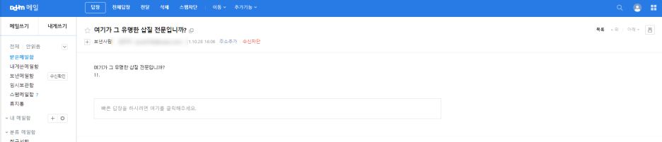 *다음 메일을 연동해서 이용하다보니 연결한 도메인으로 메일을 보내도 다음사이트 메일 받기에서 확인이 가능하다.