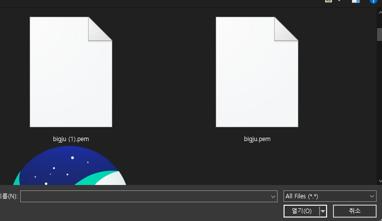 All Files로 선택하면 나오는데 맞는 pem 키를 열기 선택