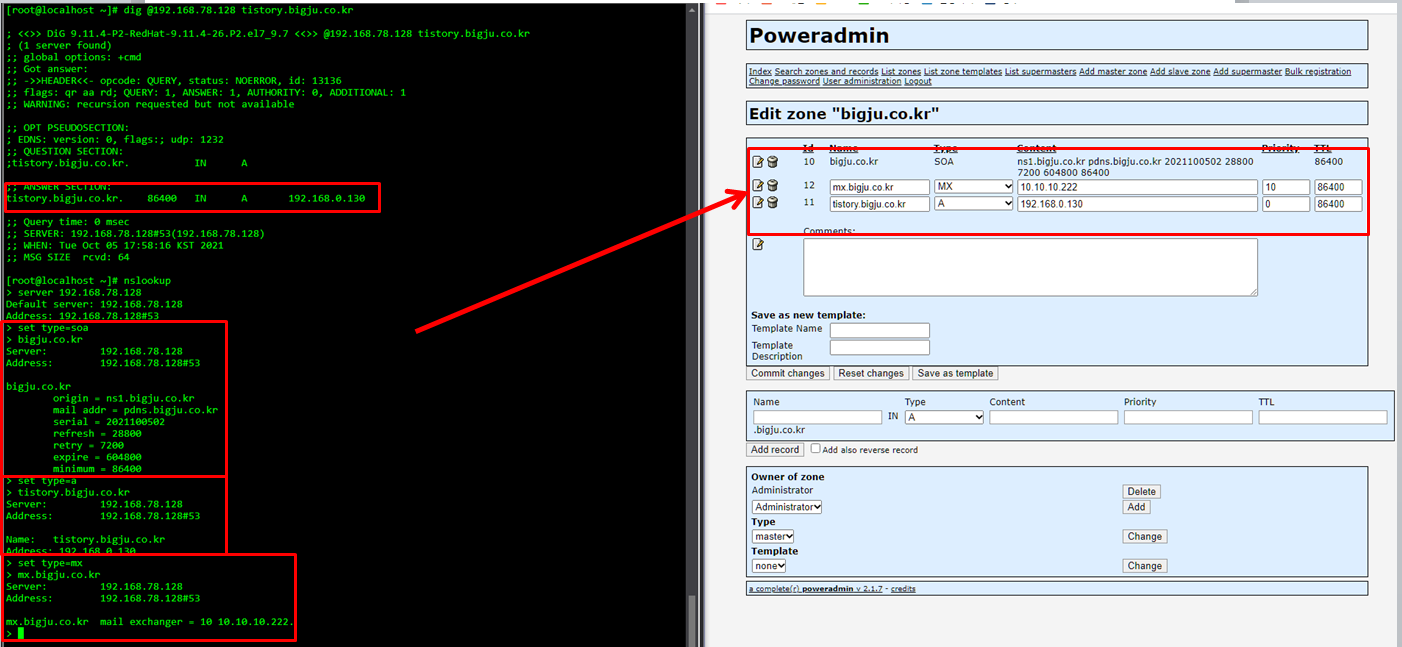 PDNS 설치법 : https://bigju.tistory.com/entry/Centos7-pdns-%EC%84%A4%EC%B9%98-%ED%95%98%EA%B8%B0