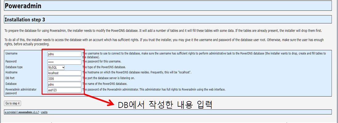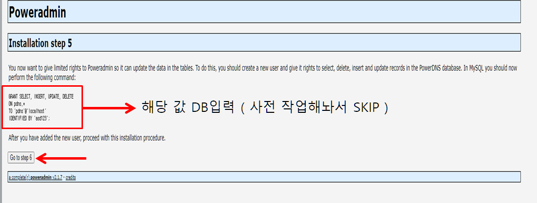 GRANT ALL ON pdns.* TO 'pdns'@'localhost' IDENTIFIED BY '패스워드';