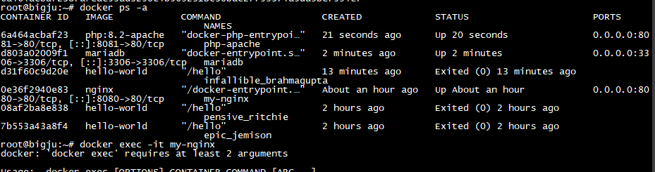 ex) docker exec -it my-nginx