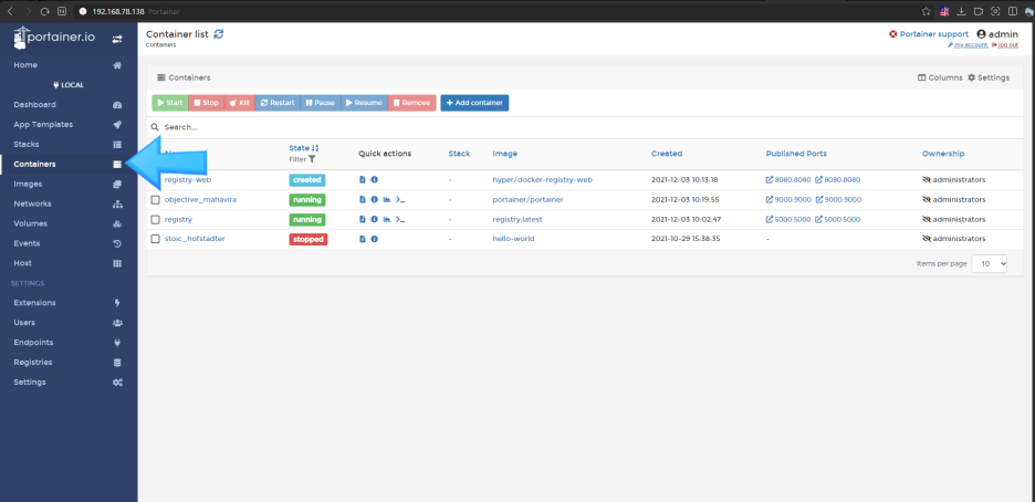 그래서 Portainer를 설치 하면 편하게 이용이 가능하게 됩니다.