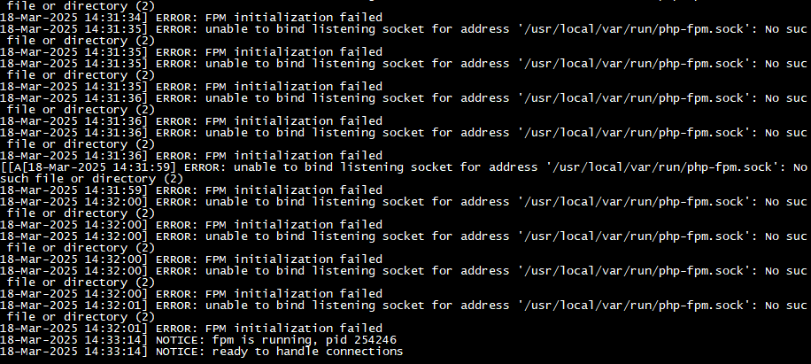 ERROR: unable to bind listening socket for address '/usr/local/var/run/php-fpm.sock': No such file or directory (2)