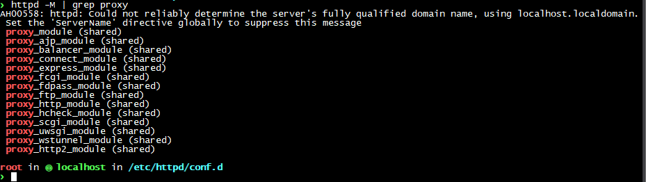 -Rocky Linux의 Apache는 기본적으로 mod_proxy가 포함되어 있습니다. 아래 명령어로 활성화 여부를 확인