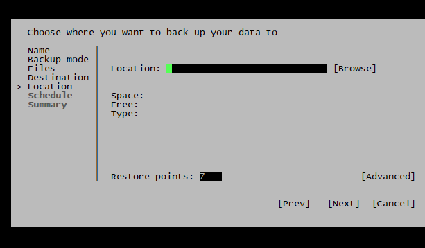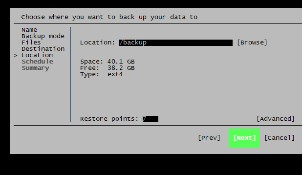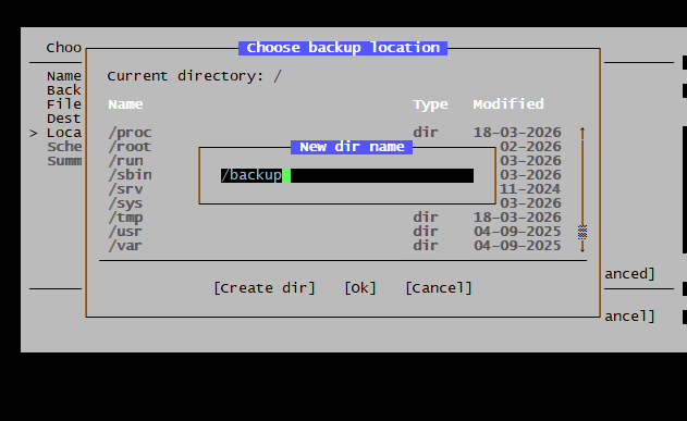 다음 단계: 저장할 폴더 경로를 지정하게 됩니다 (예: /backup).