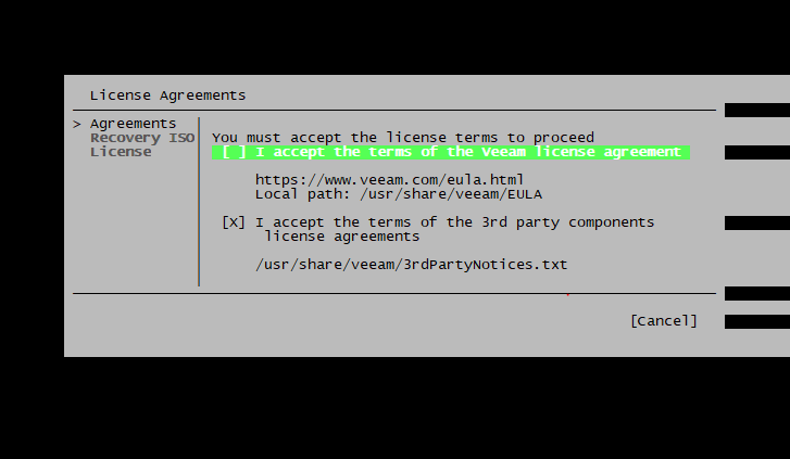 * I accept the terms of the Veeam license agreement 체크