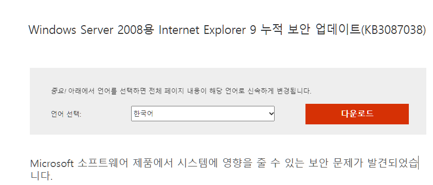 4. Windows Server 2008용 Internet Explorer 9 누적 보안 업데이트 (IE9 다운로드)