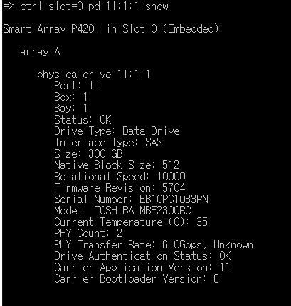 => ctrl slot=0 pd 1I:1:1 show