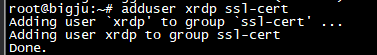 root@bigju:~# adduser xrdp ssl-cert