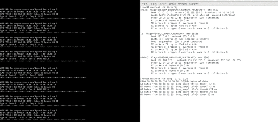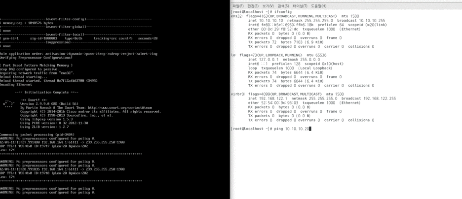ping 사용하기 전에는 snort에서는 아무것도 탐지가 안됩니다.