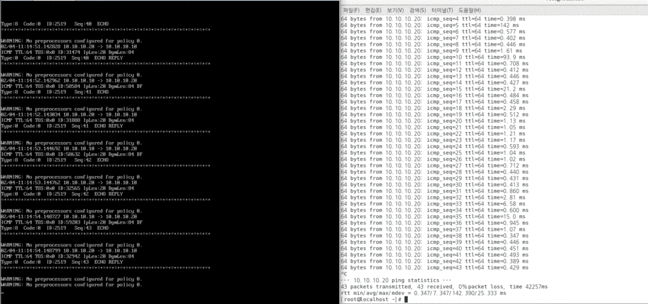 ping 이 멈추자 snort에서도 탐지가 멈춥니다.